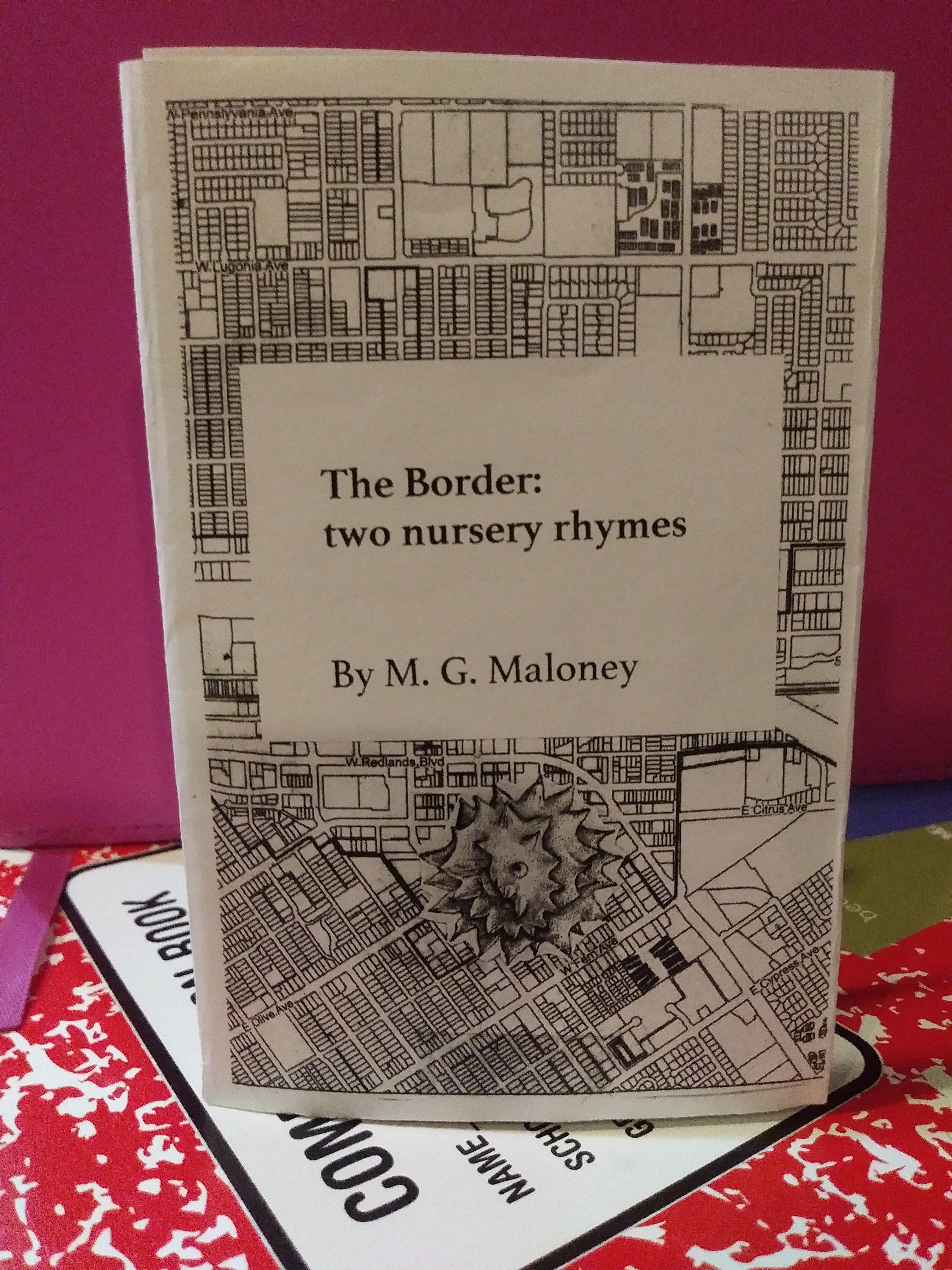 - The Border: two nursery rhymes, (Redlands, 2020), 6 pages.